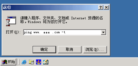 2> 在打开后面输入"ping www.***.com -t",如下图所示: